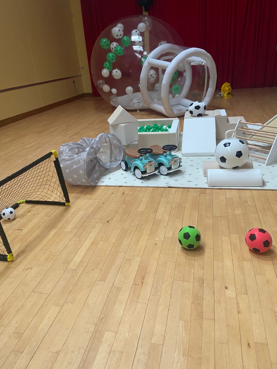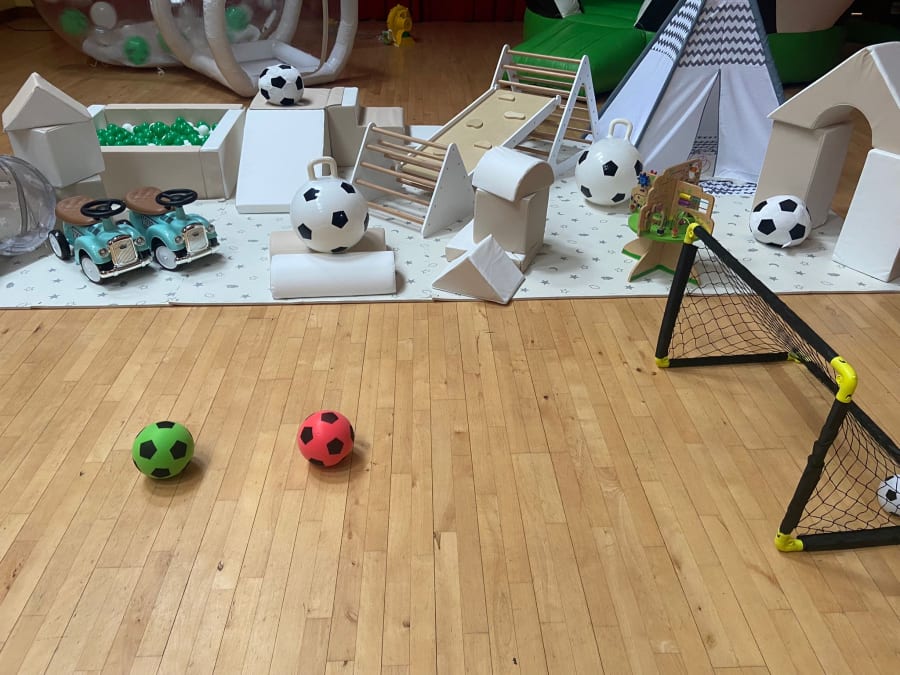 Comes with Little Bounce Play Equipment plus some football themed extras which includes: foam mats, teepee, two ride ons, step slide and tunnel, pyramid stacker, soft play rainbow, 2 hoppers Il piece soft play, footballs, football nets, and ball pit. Also our, Football Dome bouncy castle and Big Bounce Bubble with your choice of balloons or football themed. Specially designed for kids under 4 years old that are football mad! Lots to keep the little bouncers entertained in a safe and stimulating environment. If you would like a different colour for your soft play please ask.