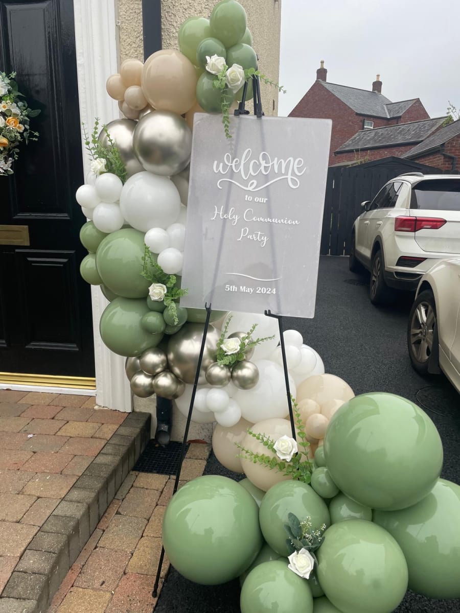 Elevate your party with a personalized sign complemented by a stunning balloon display, adding an extra special touch to your celebration. Welcome your guests in style and mark the occasion with one of our amazing displays.