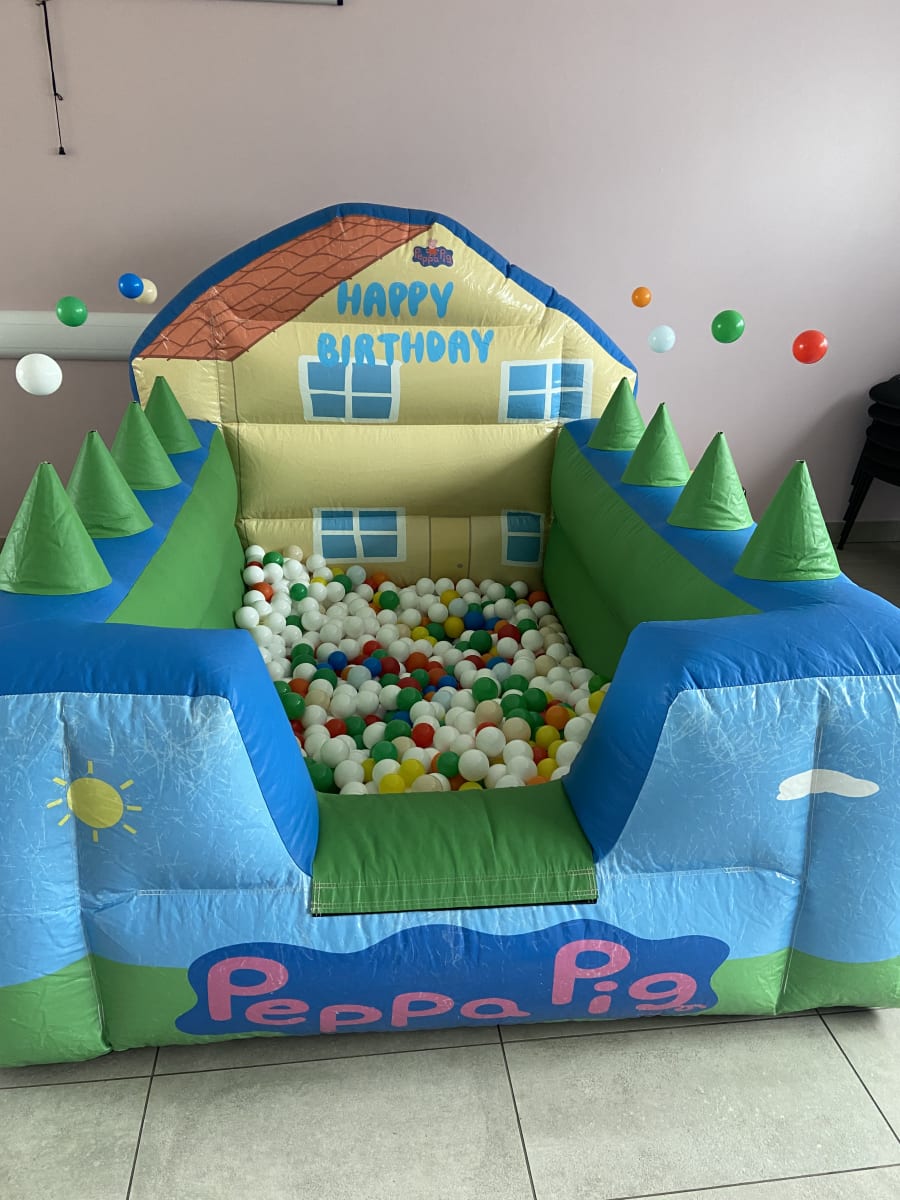 Introducing the Peppa Pig Ball Pit - the perfect addition to your child's playtime fun! This inflatable ball pit features colorful Peppa Pig designs that will spark your little one's imagination and provide hours of entertainment.