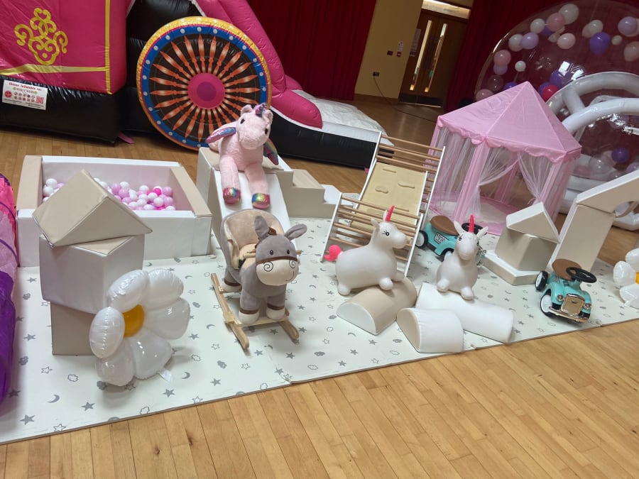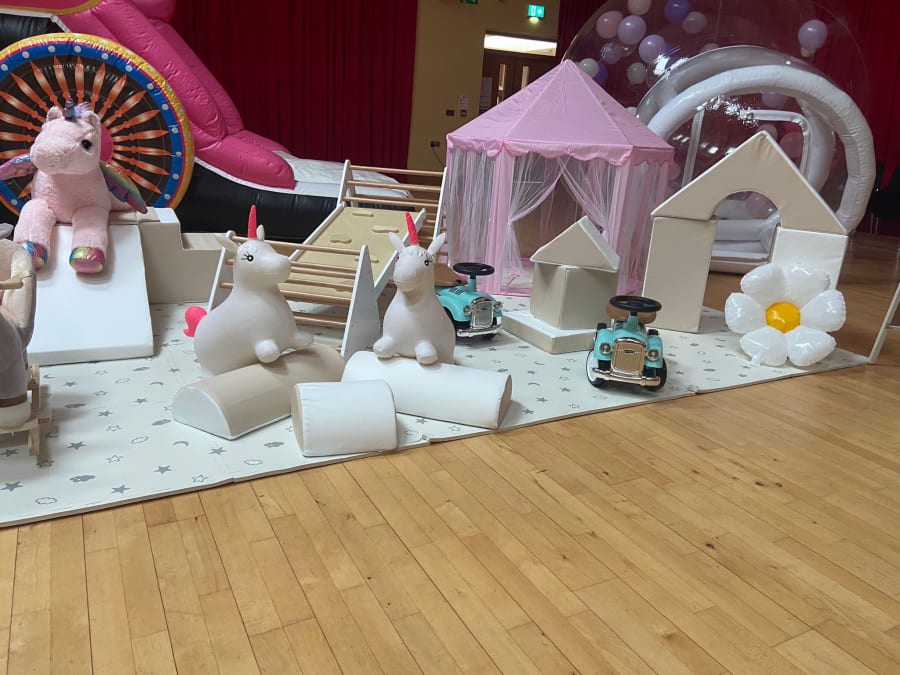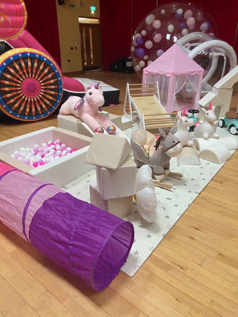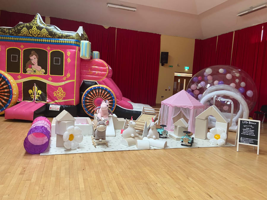 A party package fit for any little princess with Princess Carriage Bouncy Castle, Big Bounce Bubble and our Little Bounce Play Equipment with Princess extras which includes: foam mats, castle tent, two vintage cars, climbing frame, slide, Il piece soft play, rocker, tunnel, teddies and ball pit. This package is specifically designed for little princesses under 4 years old and offers a safe and stimulating environment for them to play and explore.
